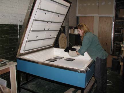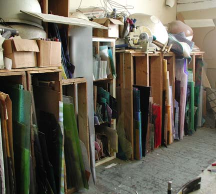 Pictures of our studio Jack Working Glass Racks Jack removing work from a kiln in the studio, and pictures through the peephole with the kiln at full firing temperature. These are pictures of the beautiful view from our original studio. The first one is the Statue of Liberty on a blustery day. The second one is Staten Island, and the last is a picture of lower Manhattan Island, it was taken prior to the September 11th attacks and shows the New York skyline as it should still be. I almost did not put this picture in but this is always how I will remember this view. When I came to NY 15 years ago the World Trade Center and the Statue of Liberty were the two things I wanted to see first. It broke my heart to watch the towers fall. I lost a great friend that day, Eric Allen was one of the hundreds of brave fire fighters who gave all to save others. He is survived by a lovely wife and beautiful daughter. He is a hero and he was my friend. I decided to put this picture on my webpage as a small tribute to him and to all the victims of that horrific day. Those great towers and all those great people are still here, and always will be, in our hearts. Rest in peace Eric.